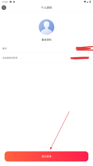 3、進入個人資料的頁面內,點擊正下方退出登錄的按鈕。