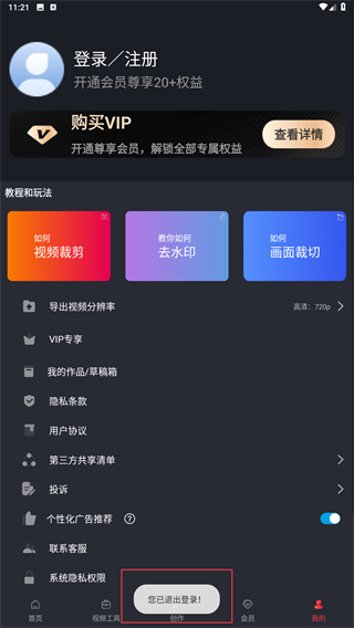 4、會自動返回個人主頁內,顯示已退出登錄的字眼表示已退出。