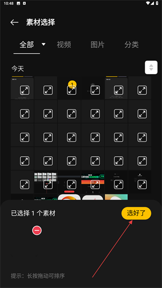 2、進入素材選擇的界面內(nèi),選擇后再點擊選好了的按鈕。