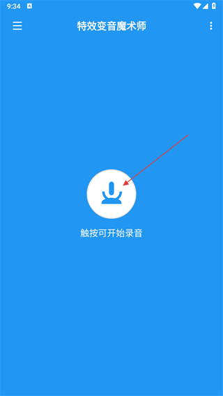 1、打開(kāi)特效變音魔術(shù)師app,點(diǎn)擊中間的麥克風(fēng)圖標(biāo)開(kāi)始錄音。