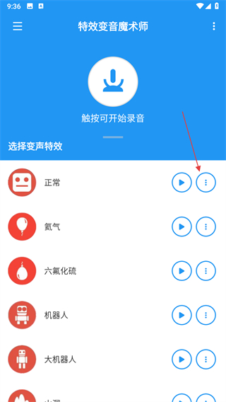 3、在下列列表中選擇想要的變聲特效,然后點(diǎn)擊后面的三點(diǎn)菜單。