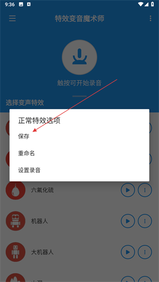 3、點(diǎn)擊之后,選擇其中的保存選項(xiàng),即可保存變聲后的音頻。