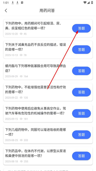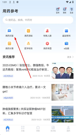 1、打開 APP 首頁,點擊用藥問答入口,可參與各類用藥知識題目作答。