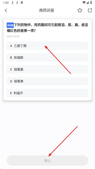 3、瀏覽選項后,點擊確認完成答題,助力提升用藥知識儲備。