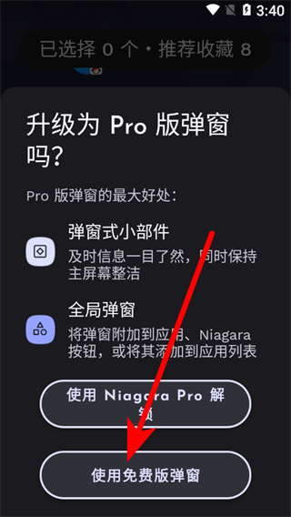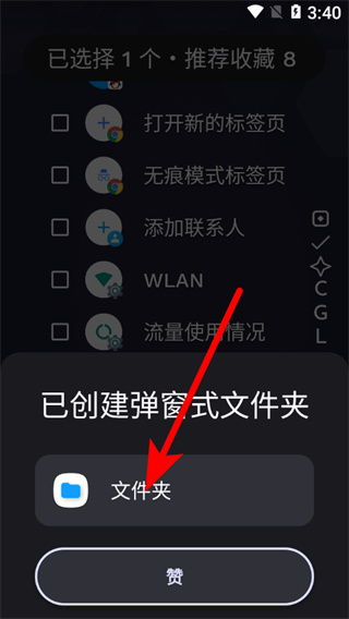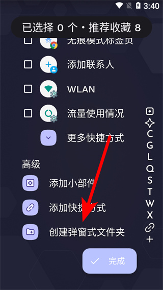 1、在Niagara Launcher應(yīng)用列表頁(yè)面,點(diǎn)擊創(chuàng)建彈窗式文件夾選項(xiàng),彈出彈窗版本選擇框。