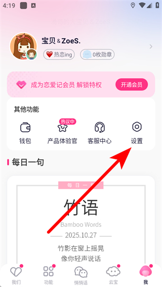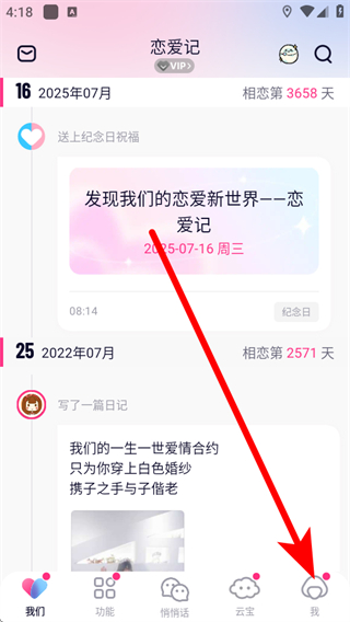 1、打開戀愛記應用,在底部導航欄中找到并點擊我選項。