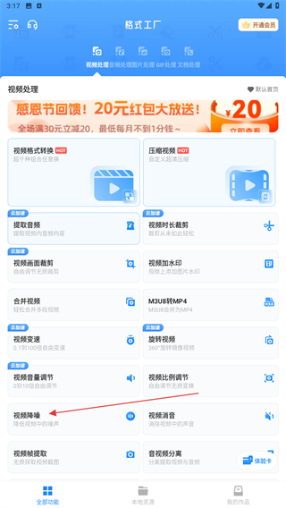 1、啟動格式工廠的應(yīng)用,進(jìn)入首頁點擊下發(fā)視頻降噪的按鈕。