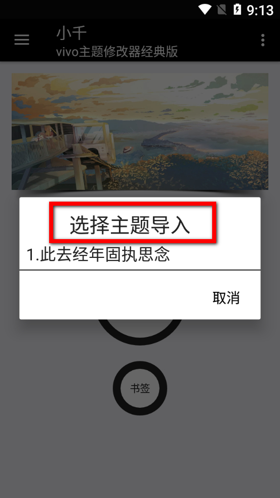 1、在主界面點(diǎn)擊“主題”(因?yàn)樽煮w功能暫時(shí)無(wú)效,所以點(diǎn)字體也沒(méi)用),再點(diǎn)擊“選擇文件”