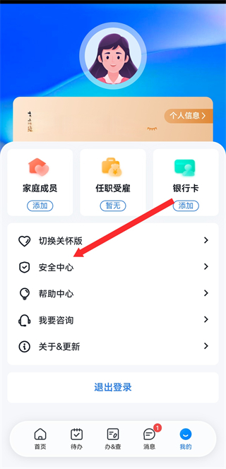2、在個人的頁面中,點擊安全中心,進(jìn)入安全中心的頁面。