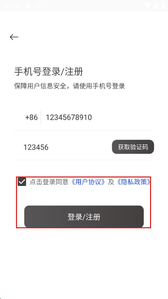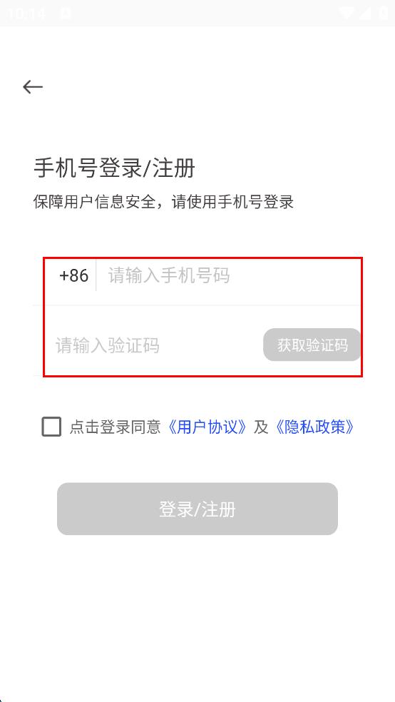 3、輸入手機(jī)號(hào)碼和驗(yàn)證碼,勾選點(diǎn)擊登錄同意用戶協(xié)議及隱私政策。
