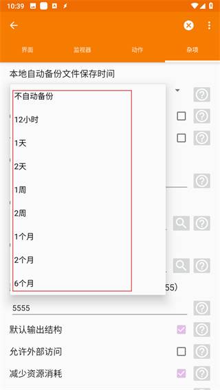 3、找到本地自動(dòng)備份文件保存時(shí)間設(shè)置項(xiàng),點(diǎn)擊其下拉按鈕。