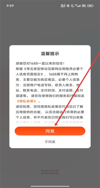 1、可以通過點擊溫馨提示彈窗中的同意按鈕,進入app中開始使用。