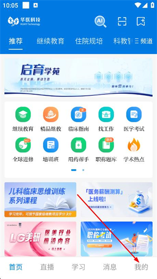 1、打開掌上華醫(yī),點(diǎn)擊底部導(dǎo)航欄我的選項。