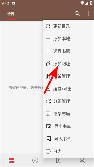 2、在功能菜單中,點(diǎn)擊添加網(wǎng)址選項(xiàng),然后需要再彈出添加書籍網(wǎng)址窗口。