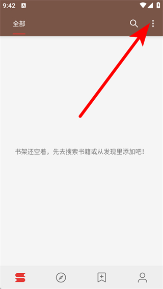 1、在閱讀app書架頁面,點(diǎn)擊右上角三點(diǎn)圖標(biāo),展開功能菜單。