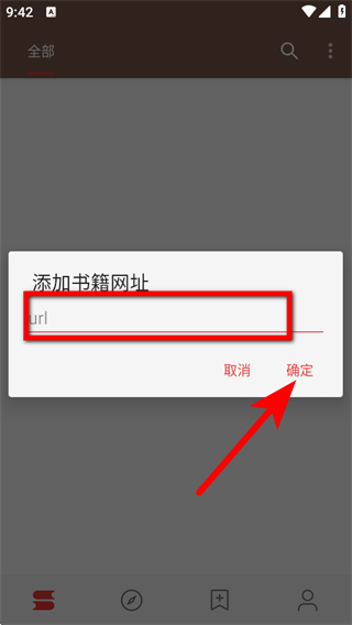 3、在添加書籍網(wǎng)址窗口的url輸入框中,輸入書籍網(wǎng)址,點(diǎn)擊確定按鈕,即可完成網(wǎng)址添加。