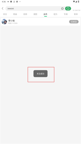 4、當(dāng)頁面顯示關(guān)注成功的按鈕,表示已添加成功。