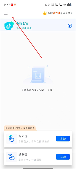 1、打開萬能點擊器應(yīng)用,點擊三條橫線菜單按鈕。