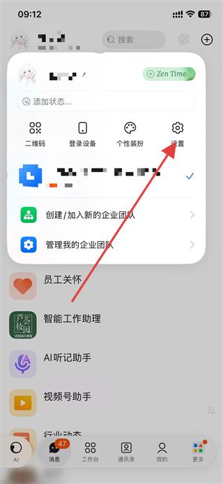 2、在彈出的頁面中,點(diǎn)擊設(shè)置選項(xiàng),進(jìn)入設(shè)置頁面。