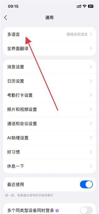 4、點(diǎn)擊多語言選項(xiàng),選擇想要切換的語言即可完成設(shè)置。