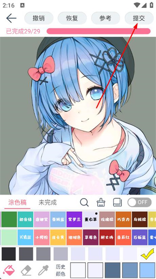 3、繪畫(huà)完成后,找到并點(diǎn)擊右上角的提交選項(xiàng)。