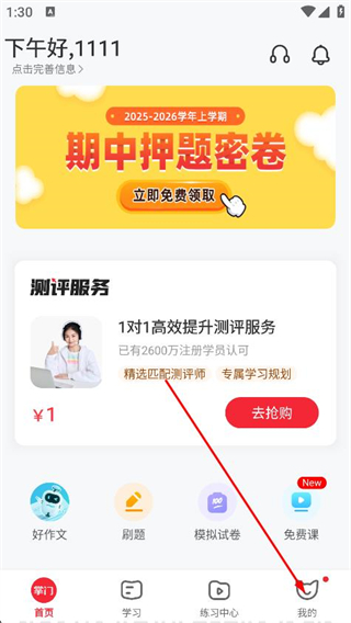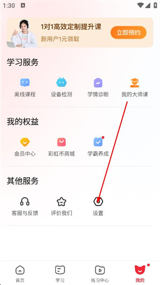 1、打開掌門1對1輔導(dǎo),點擊底部導(dǎo)航欄的我的選項。