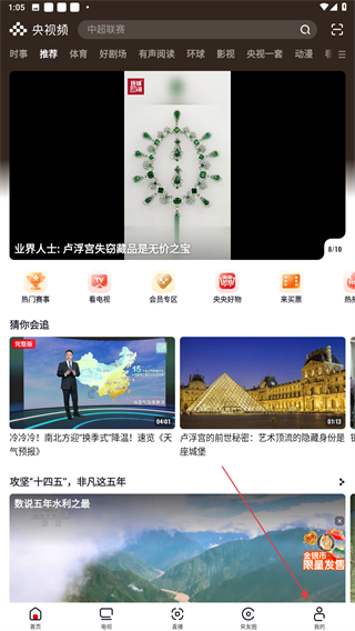 1、啟動(dòng)央視頻的應(yīng)用APP,在首頁(yè)的右下角點(diǎn)擊我的功能圖標(biāo)。