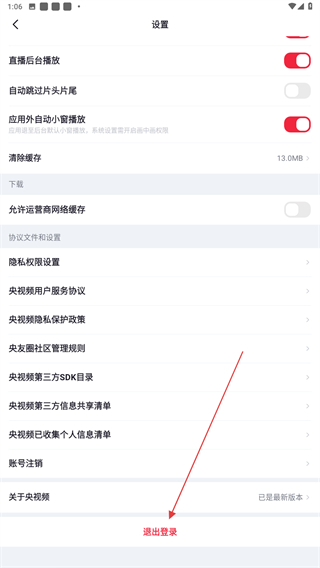 3、進(jìn)入設(shè)置的界面內(nèi),滑到最下方點(diǎn)擊退出登錄的功能按鈕。