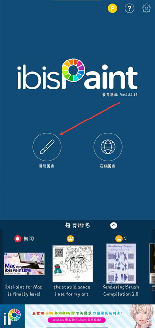1、通過(guò)點(diǎn)擊ibisPaint主界面的在線圖庫(kù)圖標(biāo),進(jìn)入最受歡迎藝術(shù)作品排行頁(yè)面,瀏覽平臺(tái)各類創(chuàng)作。