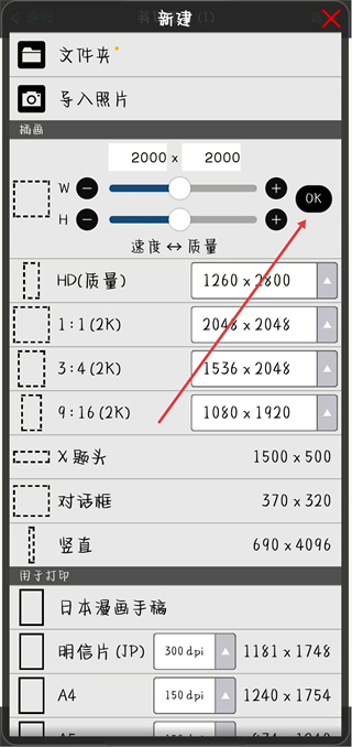 3、選擇畫布尺寸,設(shè)置完成后點(diǎn)擊OK。