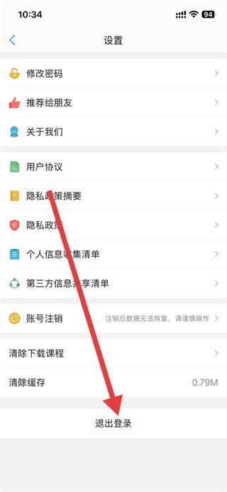 3、在設(shè)置頁面,點(diǎn)擊下方的退出登錄選項(xiàng)。