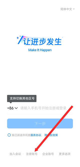 1、打開浙大釘APP,在登錄頁面點擊注冊賬號的按鈕。