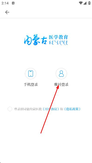 3、在登錄頁面中,選擇并點(diǎn)擊右側(cè)賬號(hào)登錄選項(xiàng)。