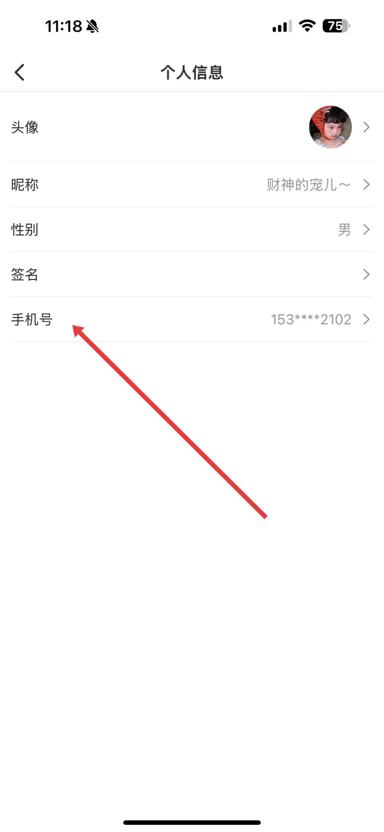 4、進入個人信息頁面,找到手機號選項并點擊,按照提示流程操作即可修改手機號碼信息。