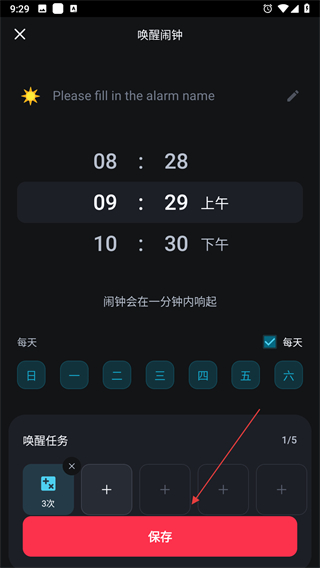 4、完成上述操作后,即可開啟使命鬧鐘APP的使用,后續(xù)可根據(jù)自身需求設置鬧鐘等功能。