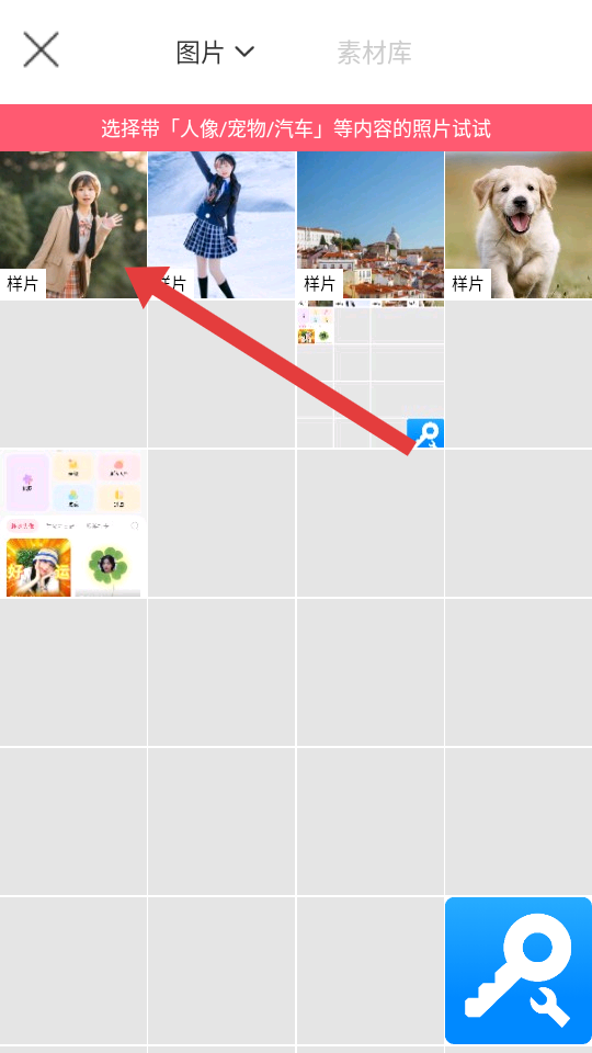 2、在圖片選擇界面,點(diǎn)擊選擇要編輯的圖片,進(jìn)入圖片編輯的頁面。
