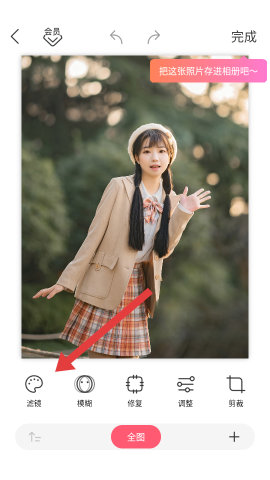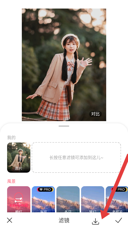 4、濾鏡設(shè)置完成后,點(diǎn)擊底部下載圖標(biāo),保存編輯后的圖片,完成制作。