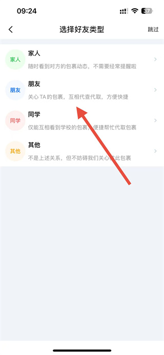 2、在選擇好友類型頁面,根據(jù)實際關(guān)系選擇類型。
