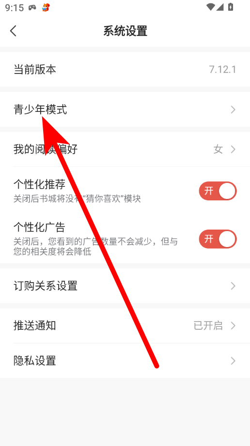 3、在系統(tǒng)設(shè)置界面,點(diǎn)擊“青少年模式”選項(xiàng),進(jìn)入相關(guān)頁(yè)面。