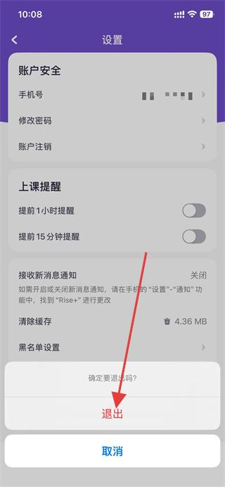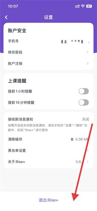 3、進入設置頁面后,點擊底部的退出rise+選項。