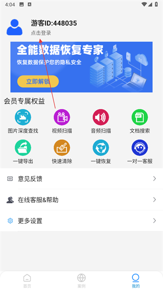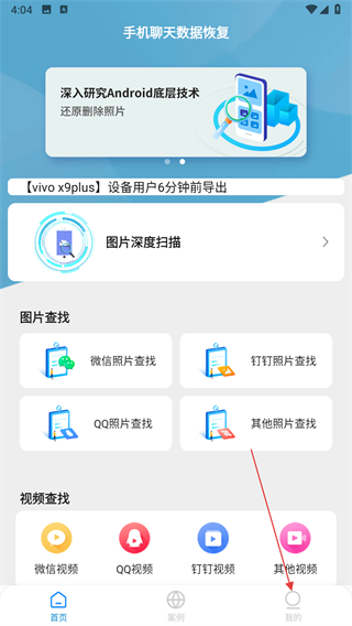 1、打開手機(jī)聊天數(shù)據(jù)恢復(fù)應(yīng)用,點(diǎn)擊右下角我的選項(xiàng)。