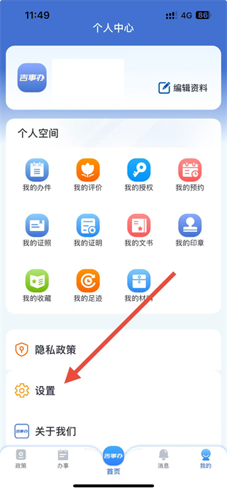 1、打開吉事辦APP,在首頁點擊底部我的選項進入個人空間頁面。