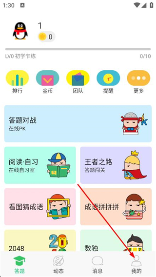 1、打開題王爭(zhēng)霸app,點(diǎn)擊底部導(dǎo)航欄我的選項(xiàng)。
