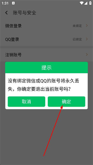 4、在彈出的提示框中,點(diǎn)擊確定即可退出登錄。