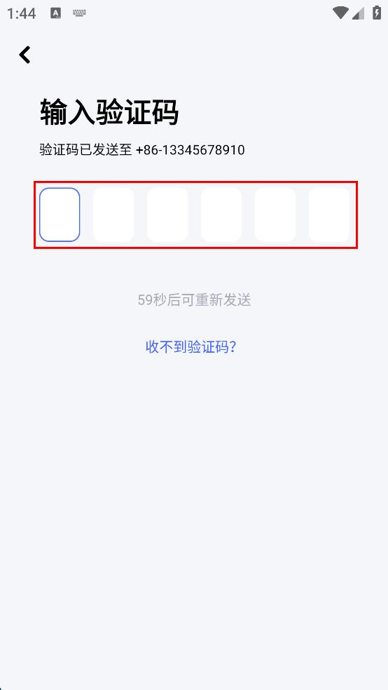 3、收到驗證碼后,進入輸入驗證碼頁面,依次輸入收到的驗證碼。