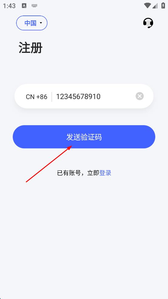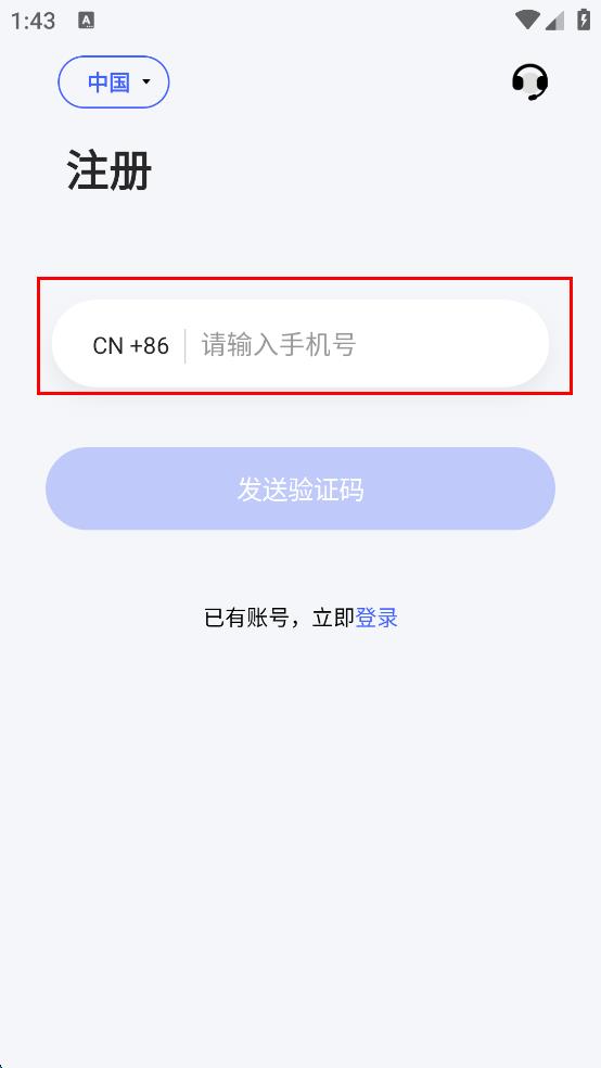 2、在注冊頁面,輸入手機號,點擊“發(fā)送驗證碼”,等待接收驗證碼。