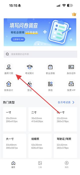 1、打開免費(fèi)證件照應(yīng)用,點(diǎn)擊通用寸照選項(xiàng)。