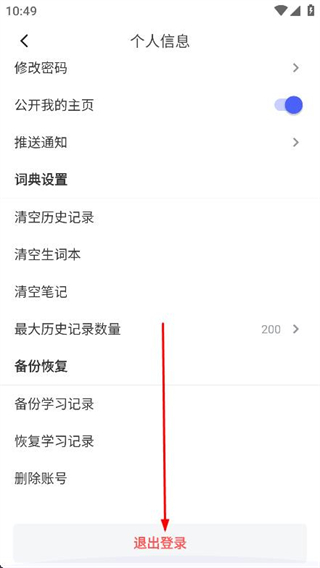 4、在設置頁面,點擊退出登錄按鈕,即可完成退出登錄操作。
