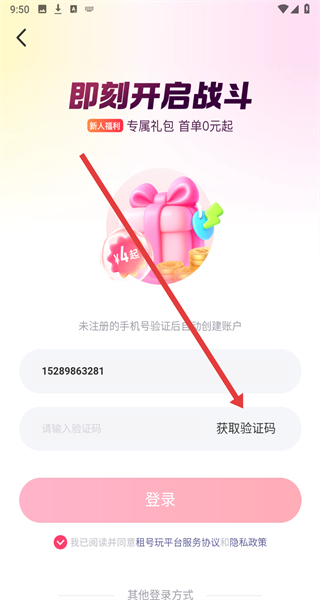 3、在登錄頁面中填寫好手機(jī)號碼后,可以點(diǎn)擊下方獲取驗(yàn)證碼按鈕,進(jìn)行獲取驗(yàn)證碼。