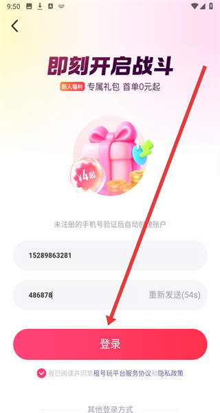 4、在獲取到驗(yàn)證碼后,點(diǎn)擊輸入框填寫,即可點(diǎn)擊登錄按鈕完成賬號登錄。